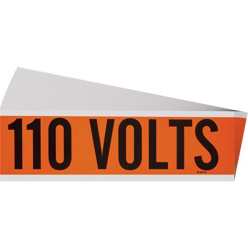 “110 Volts” Conduit & Voltage Labels – Vinyl/Cloth, 2-1/4″, 9″, Adhesive, English, Electrical, Repositionable Rubber, Semi-Gloss, Black on Orange, Rectangle
