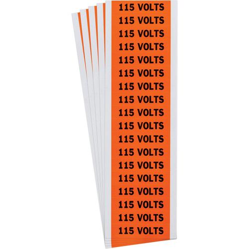 “115 Volts” Conduit & Voltage Labels – Vinyl/Cloth, 1/2″, 2-1/4″, Adhesive, English, Electrical, Repositionable Rubber, Semi-Gloss, Black on Orange, Rectangle