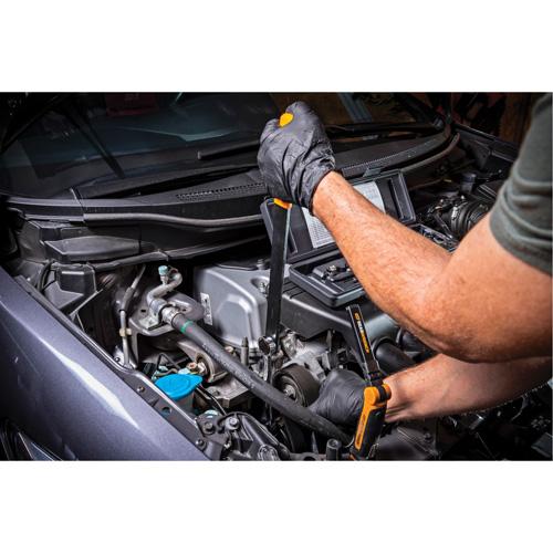 - Long bar can hold sockets directly or attach to the ratcheting wrench for maximum access