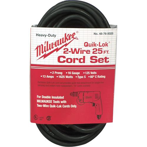 25 ft., two-wire double insulated Quik-Lok feature allows for fast replacement of a damaged cord Premium grade Hi-Flex wire 1-15P NEMA type plug