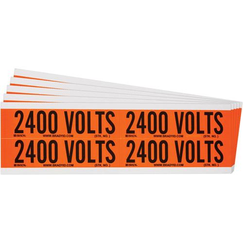 “2400 Volts” Conduit & Voltage Labels – Vinyl/Cloth, 1-1/8″, 4-1/8″, Adhesive, English, Electrical, Repositionable Rubber, Semi-Gloss, Black on Orange, Rectangle