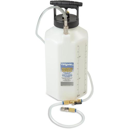 - Integrated manual pump adds air above the fluid level to prevent aeration