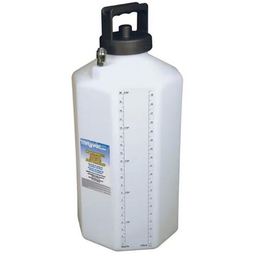 2.5-Gallon ATF Refill System – 2.5 gal. (10 L) Fluid Reservoir; Reservoir Lid with Integrated Manual Pump; Pressure Gauge; Pressure Relief Valve; 5′ Fluid Dispensing Hose with Flow Control & Auto-Shutoff Valves; MVA5800A ATF Refill Adapter Kit (Includes 13 adapters