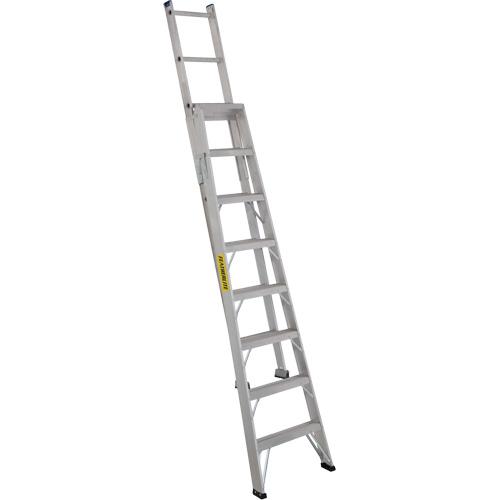 - Durable extruded aluminum rails and slip resistant serrated steps and rungs