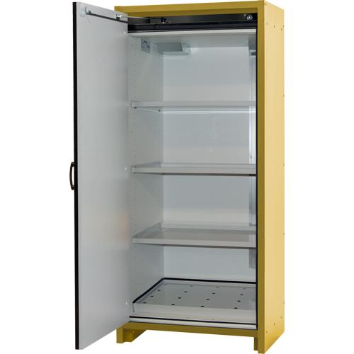 - Designed to provide 30-minutes of fire resistance, two-toned yellow cabinet is constructed with a body of melamine resin and flame retardant special plates, and a steel door front covered by a textured, durable powder-coat finish