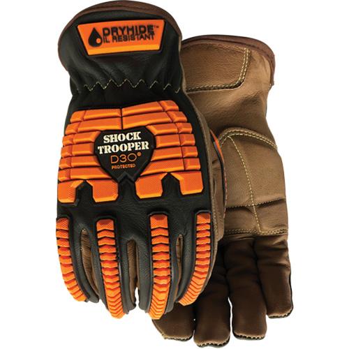 - Dryhide™ water and oil resistant full-grain goatskin leather palm and back of hand