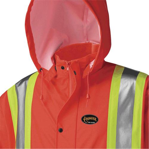 5896 Flame Resistant Waterproof Long Coat – Small, Medium, Large, X-Large, 2X-Large, 3X-Large, 4X-Large, 5X-Large, High Visibility Orange, Silver & Yellow, CGSB 155.20-2000 Type 3, ASTM D6413, ANSI/ISEA 107-2020 Class 3 Type P and R