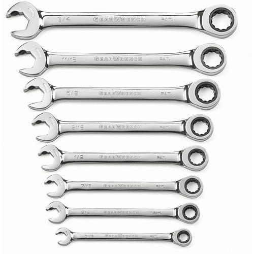 5/16" 72-Tooth 12 Point Open End Ratcheting Combination Wrench, 3/8" 72-Tooth 12 Point Open End Ratcheting Combination Wrench, 7/16" 72-Tooth 12 Point Open End Ratcheting Combination Wrench, 1/2" 72-Tooth 12 Point Open End Ratcheting Combination Wrench, 9/16" 72-Tooth 12 Point Open End Ratcheting Combination Wrench, 5/8" 72-Tooth 12 Point Open End Ratcheting Combination Wrench, 11/16" 72-Tooth 12 Point Open End Ratcheting Combination Wrench, 3/4" 72-Tooth 12 Point Open End Ratcheting Combination Wrench