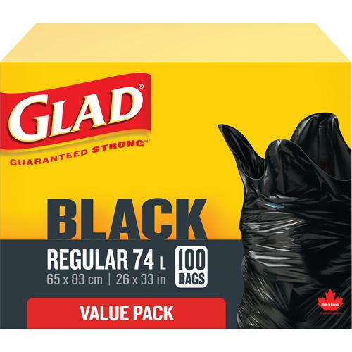 74L Garbage Bags – Regular, 100, Black, Polyethylene, Open Top
