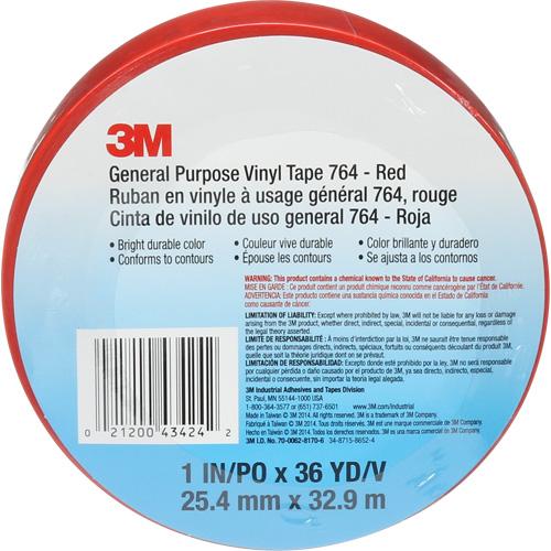 764 General-Purpose Vinyl Tape – 25.4 mm (1″), 50.8 mm (2″), 76 mm (3″), 32.9 m (108′), 5 mils, Red