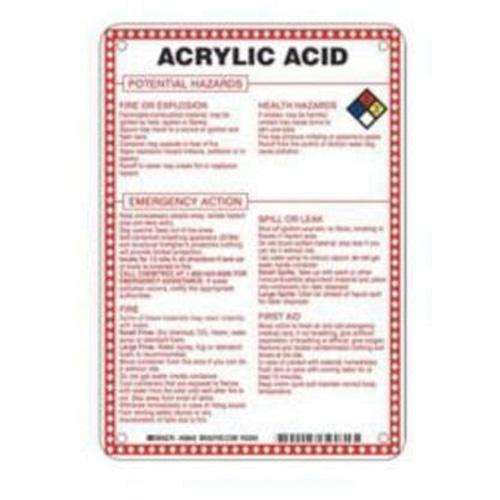 “Acrylic Acid Potential Hazards” Sign – Fiberglass, 10″, 7″, Bolt-On, English with Pictogram, Chemicals and Hazardous Materials, Red/Black/Blue/Yellow on White