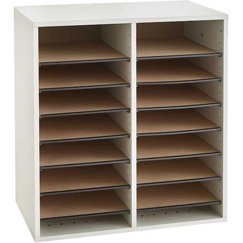 - Strong hardboard shelves (15 lb. capacity) adjust in 2-1/2" increments