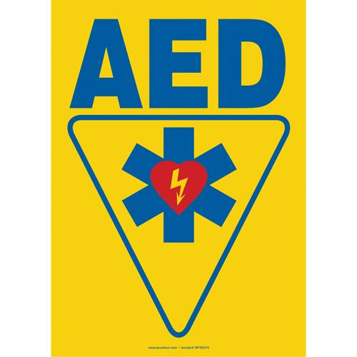 AED Sign – Plastic, Aluminum, Vinyl, 10″, 7″, Bolt-On, English with Pictogram, First Aid, AED w/Pictogram, 90°F to 168°F, 2 years outdoors