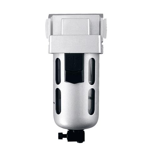 - Press-type manual drain with nighttime drain feature, which automatically drains off the bowl once the compressed air supply to the filter is switched off