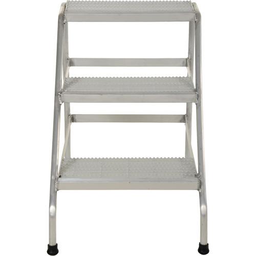- With rubber tipped legs, this step ladder is ideal for use on many types of floors