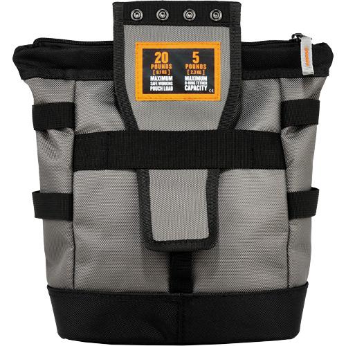 - Innovative modular buckle connection system on the back easily connects to standard tool belts and fall protection harnesses without the worker having to remove them