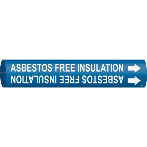 “Asbestos Free Insulation” Pipe Marker – Plastic, White on Blue, 4″ – 6″, 2-13/16″, 2-13/16″, 1-1/4″, English, Snap-On