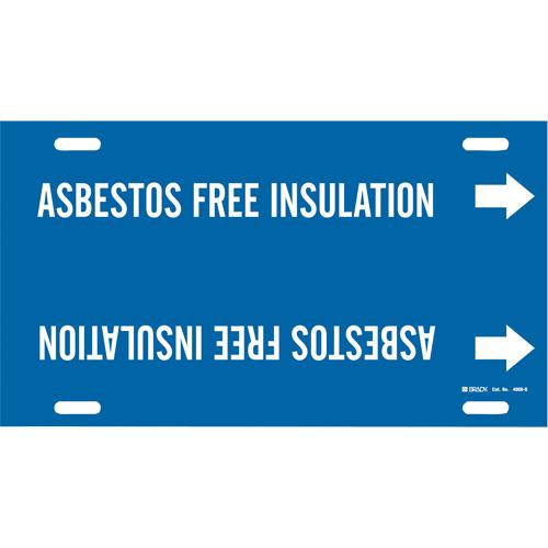 “Asbestos Free Insulation” Pipe Marker – Plastic, White on Blue, 8″ – 9-7/8″, 10″, 24″, 2-1/2″, English, Strap-On