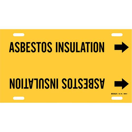 “Asbestos Insulation” Pipe Marker – Plastic, Black on Yellow, 10″ – 15″, 10″, 32″, 3-1/2″, English, Strap-On