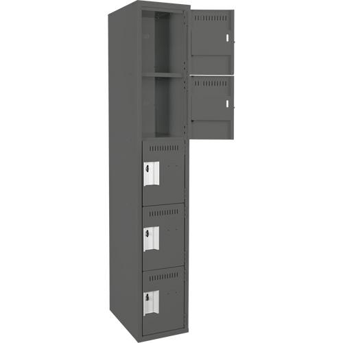 Assembled Clean Line™ Personal Effects Lockers – 5, 1, 2, 3, 4, 12″, 72″, 12″, Charcoal, Steel, Basic, Rivet (Assembled), 24, 20, 16