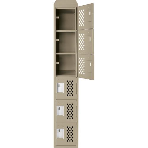Assembled Lockerettes Clean Line™ Perforated Economy Lockers – 6, 1, 2, 3, 18″, 72″, 12″, Beige, Steel, Slope, Basic, Rivet (Assembled), 24 gauge, 20 gauge, 16 gauge, 12″