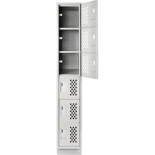 Assembled Lockerettes Clean Line™ Perforated Economy Lockers – 6, 1, 2, 3, 18″, 72″, 12″, Grey, Steel, Recessed, Rivet (Assembled), 24 gauge, 20 gauge, 16 gauge, 12″