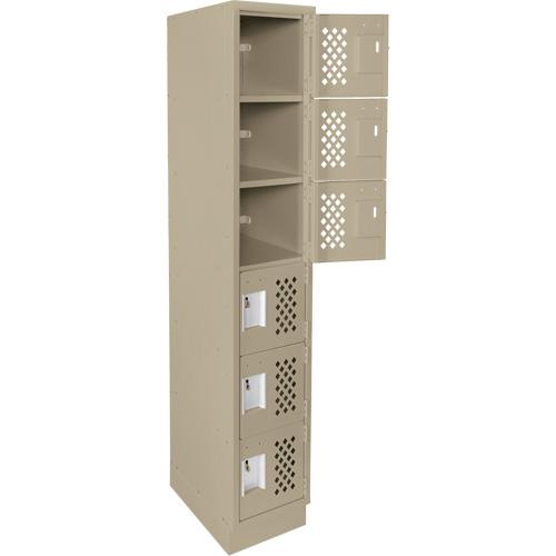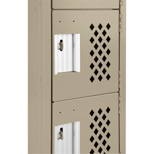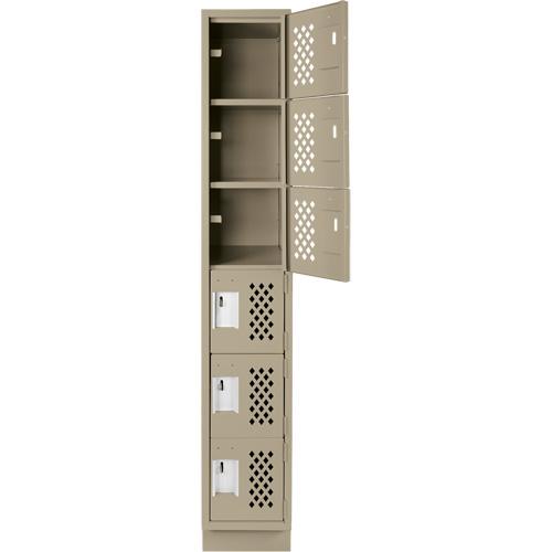 Assembled Lockerettes Clean Line™ Perforated Economy Lockers – 6, 1, 2, 3, 18″, 72″, 12″, Beige, Steel, Recessed, Rivet (Assembled), 24 gauge, 20 gauge, 16 gauge, 12″