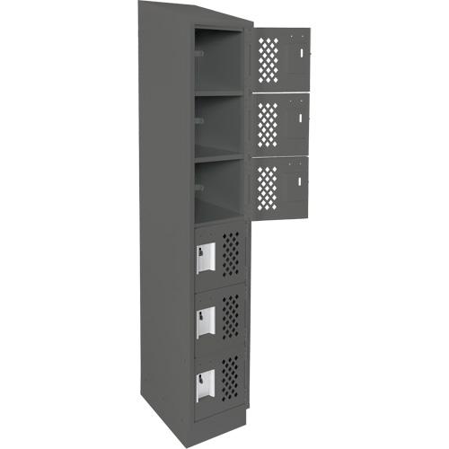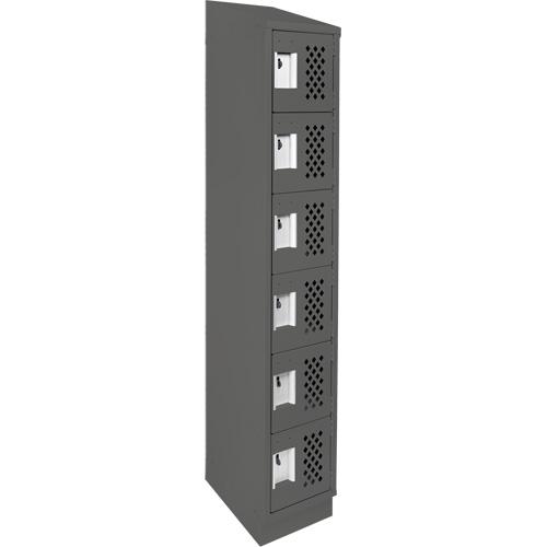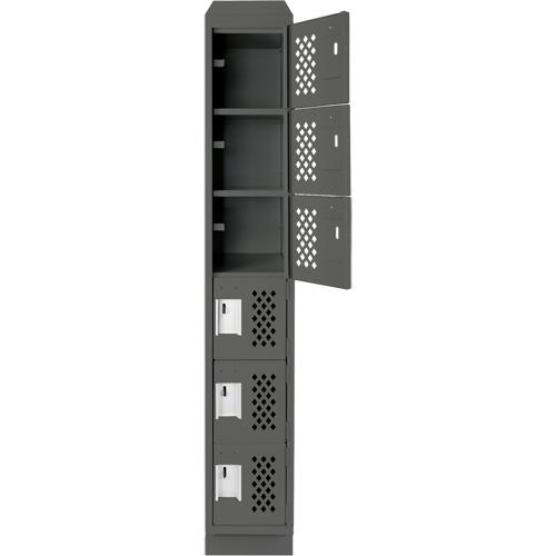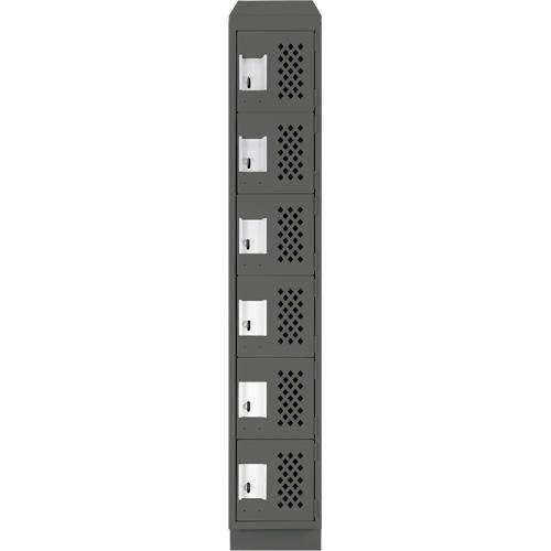 Assembled Lockerettes Clean Line™ Perforated Economy Lockers – 6, 1, 2, 3, 18″, 72″, 12″, Charcoal, Steel, Slope, Recessed, Rivet (Assembled), 24 gauge, 20 gauge, 16 gauge, 12″