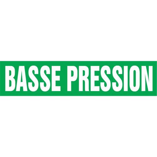 “Basse Pression” Pipe Marker – Vinyl, White on Green, 3/4″ – 1-1/4″, 1″, 2-1/2″, 8″, 1/2″, French, Self-Adhesive, SSA