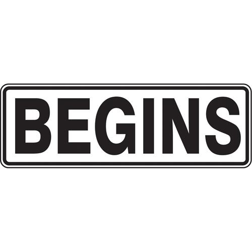“Begins” Traffic Sign – Aluminum, 8″, 24″, Bolt-On, English, Traffic, Begins