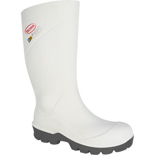 Boss® Footwear Food Processing Boot – Polyurethane, 4, 5, 6, 7, 8, 9, 10, 11, 12, 13, 14, 15, Steel, Plain, None, ASTM F2413-11, Impermeable, White