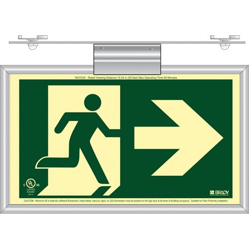 BradyGlo® Running Man Exit Sign with Right Arrow – Plastic, 8-1/2″, 15″, Hanging, Pictogram, Fire and Emergency, Running Man w/Right Arrow