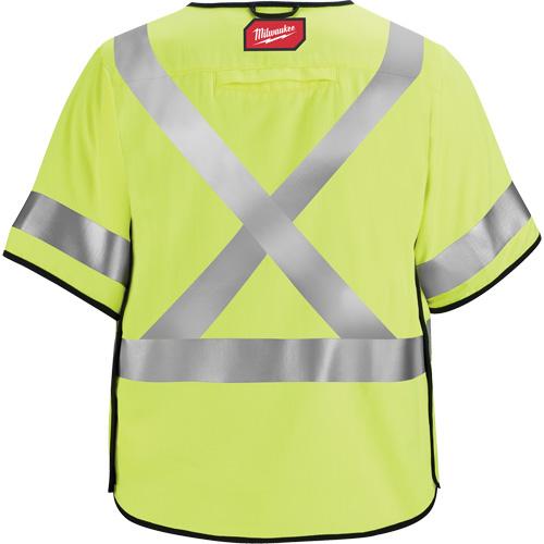 • The yellow safety vest features a quick external size adjustment for better fit and a durable pass-through slit for fall protection gear