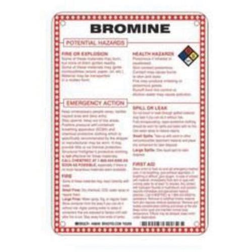 “Bromine Potential Hazards” Sign – Fiberglass, 10″, 7″, Bolt-On, English with Pictogram, Chemicals and Hazardous Materials, Red/Black/Blue/Yellow on White