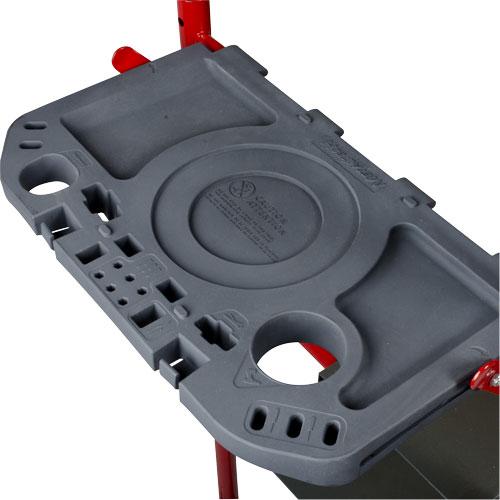 - Convenient fold-away tool shelf