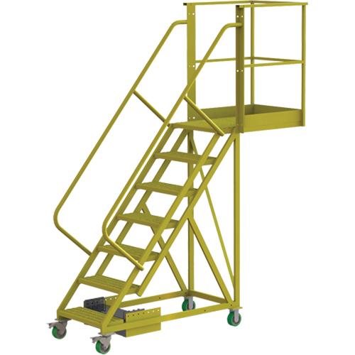 Cantilever Rolling Ladder – Steel, Unsupported, 7, 30″, 70″, Serrated, 24″, Yellow powder coat finish, 91″, 30″, 91″