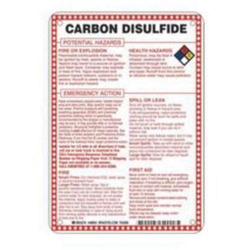 “Carbon Disulfide Potential Hazards” Sign – Fiberglass, 10″, 7″, Bolt-On, English with Pictogram, Chemicals and Hazardous Materials, Red/Black/Blue/Yellow on White