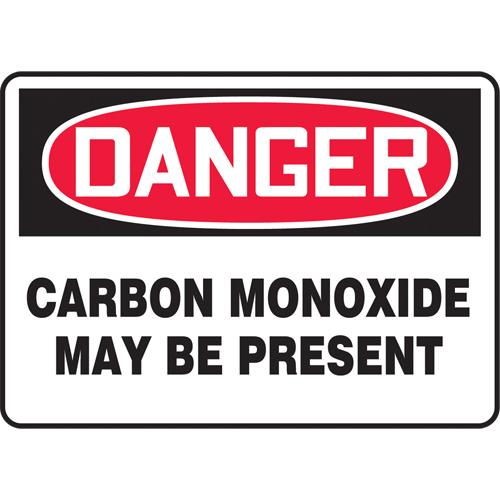 “Carbon Monoxide” Sign – Aluminum, Plastic, Vinyl, 10″, 14″, Bolt-On, English, Chemicals and Hazardous Materials, Danger; Carbon Monoxide May Be Present