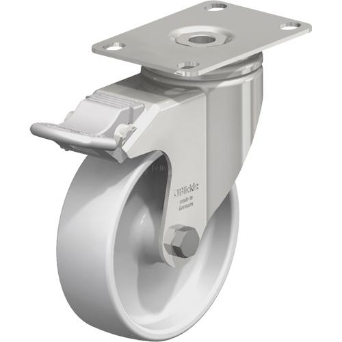 Caster – 4″ (101.6 mm), 265 lbs. (120 kg.), Nylon, Swivel with Brake, Stainless Steel, 1-1/4″ (31.75 mm), 1-3/4″ x 2-13/16″ (44 mm x 71 mm) – 1-3/4″ x 3-1/16″ (44 mm 78 mm), 5/16″ (7.93 mm), 2-1/2″ x 3-5/8″ (64 mm x 92 mm)