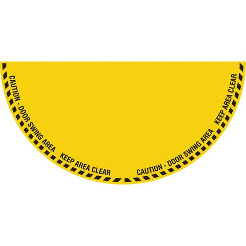 “Caution” Half Circle Swing Door Floor Sign – Flat, English with Pictogram, Vinyl, Adhesive, 28″ x 56″, “Caution Door Swing Area Keep Area Clear”, Yellow
