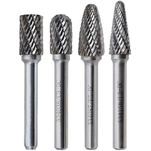 • This convenient 4 piece set is ideal for shaping smoothing and material removal of hardened steel stainless steel cast iron and non-ferrous metals
