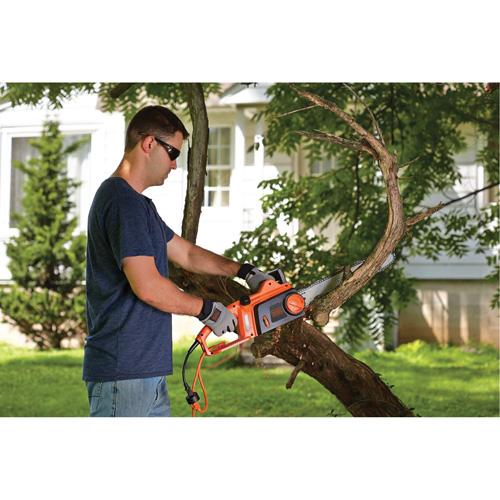 - Power through branches and logs with this 16-inch corded chainsaw
