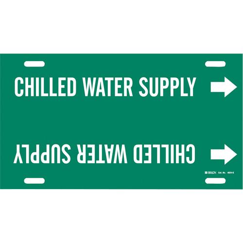 “Chilled Water Supply” Pipe Marker – Plastic, White on Green, 8″ – 9-7/8″, 10″, 24″, 2-1/2″, English, Strap-On
