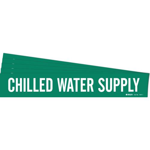 “Chilled Water Supply” Pipe Marker – Vinyl, White on Green, 2-1/2″ – 7-7/8″, 2-1/4″, 14″, 2″, English, Self-Adhesive