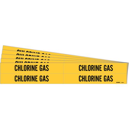 “Chlorine Gas” Pipe Markers – Vinyl, Black on Yellow, 3/4″ – 2-3/8″, 1-1/8″, 7″, 3/4″, English, Self-Adhesive, 4