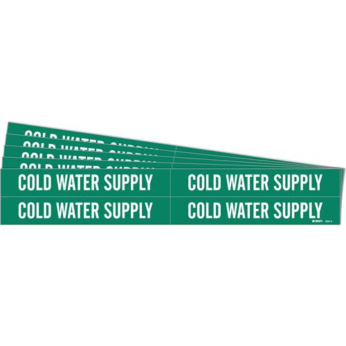 “Cold Water Supply” Pipe Markers – Vinyl, White on Green, 3/4″ – 2-3/8″, 1-1/8″, 7″, 3/4″, English, Self-Adhesive, 4