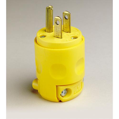 Commercial Grade Straight Blade Plug – 15 A, 5-15P, 125 V, PVC, Yellow, 0.245 – 0.655″, No. 18-3 thru 12-3 cords