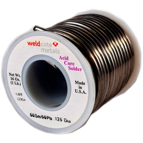 Common Solder – 0.0625″, Acid, Lead-Based, 50% Tin 50% Lead, Wire, 1/8″ x 5# Spool