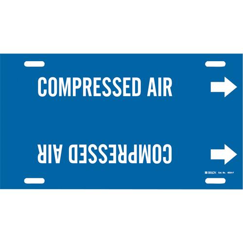 “Compressed Air” Pipe Marker – Plastic, White on Blue, 6″ – 7-7/8″, 8″, 16″, 1-1/4″, English, Strap-On
