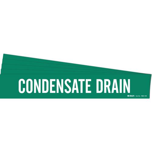 “Condensate Drain” Pipe Marker – Vinyl, White on Green, 8″ – 20″, 4″, 24″, 3-1/2″, English, Self-Adhesive